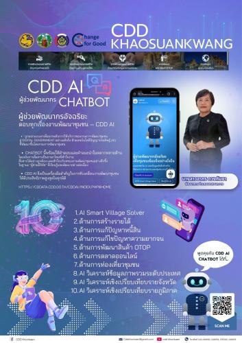 พช.เขาสวนกวาง : ประชาสัมพันธ์ CDD Ai. แพลตฟอร์มผู้ช่วยพัฒนากรอัจฉริยะ (Intelligent Development Assistant Platform) ที่รวมศูนย์ข้อมูลเชิงลึก เครื่องมือวิเคราะห์ที่ชาญฉลาด และแนวทางการพัฒนาที่ครอบคลุม เพื่อสนับสนุนนักพัฒนาชุมชน ผู้บริหาร และประชาชนในพื้นที่ ให้สามารถเข้าถึงข้อมูล วางแผน และตัดสินใจเพื่อการพัฒนาได้อย่างรวดเร็วและแม่นยำ